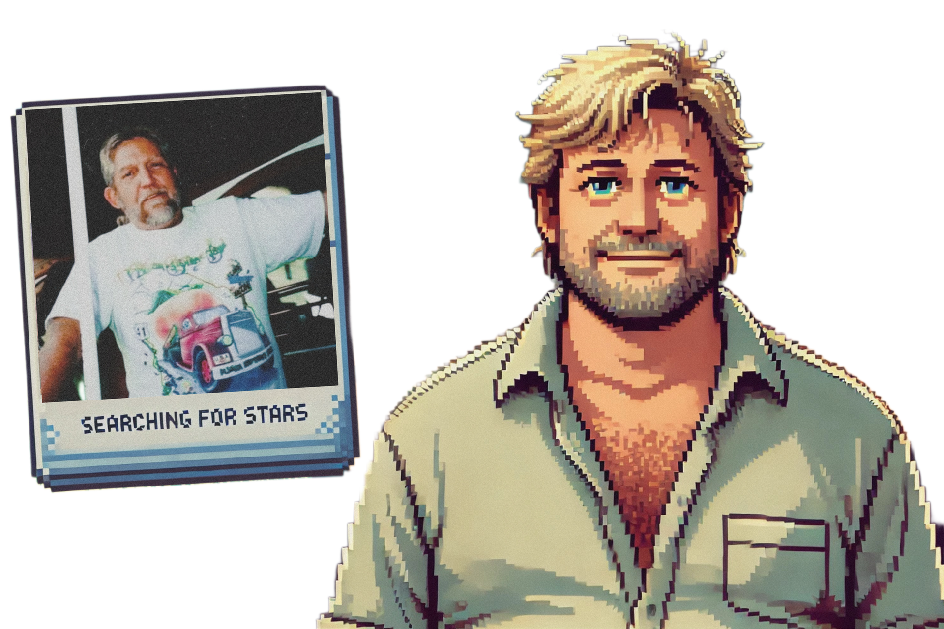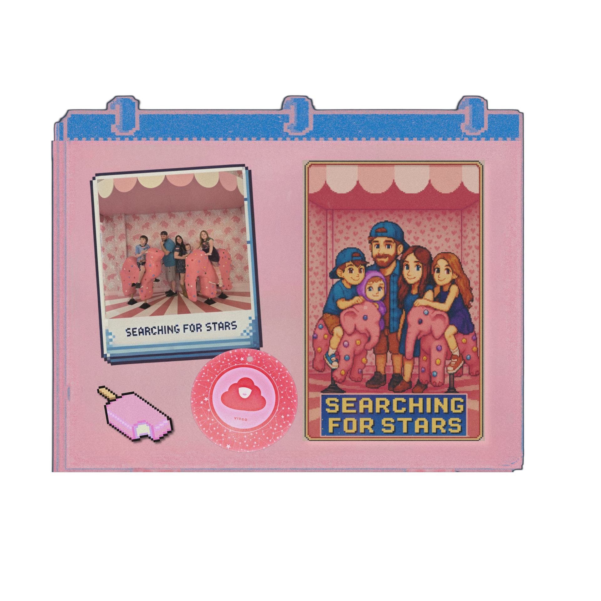 An Interactive, Clickable Visual Scrapbook of Music, Memory, Pixel Art, Musical Echolalia, and the Real Stories that Live Inside the Searching for Stars Universe